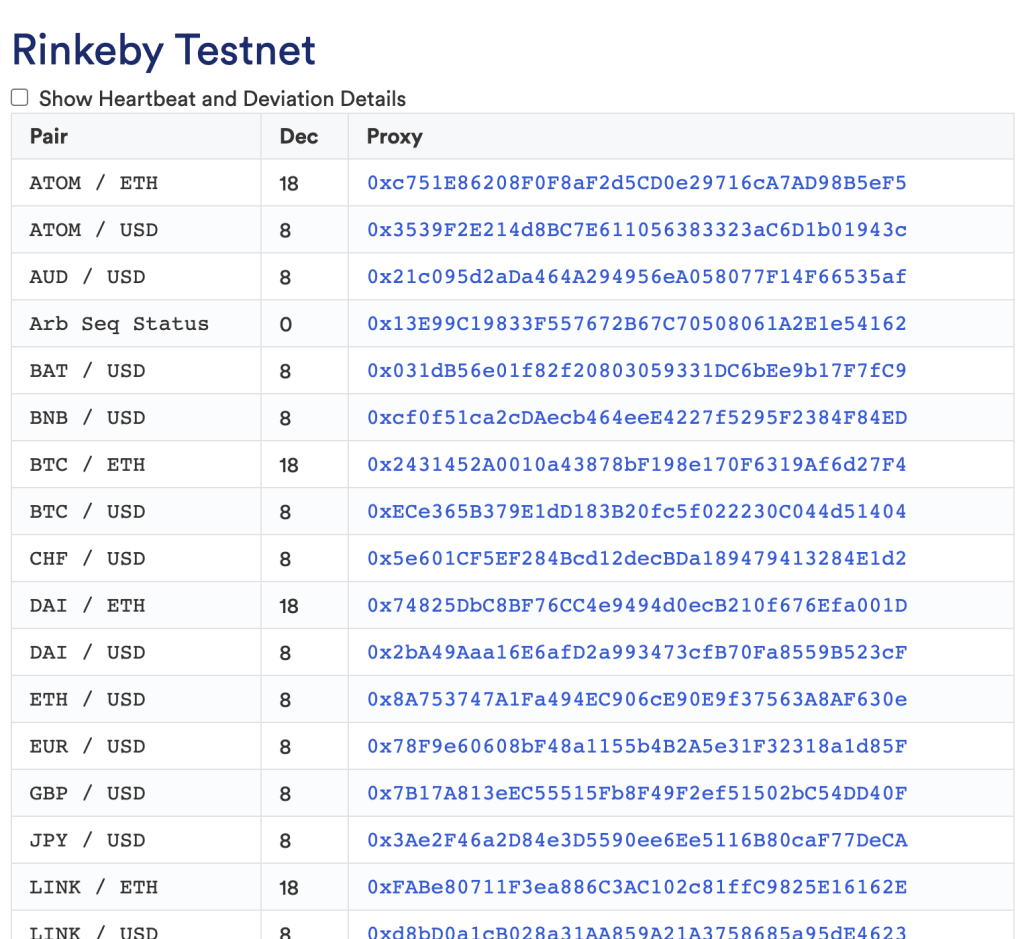 In order to find where the ETH / USD price feed contract is located on the Chainlink Rinkeby blockchain, we can go to the Ethereum Price Feeds documentation: