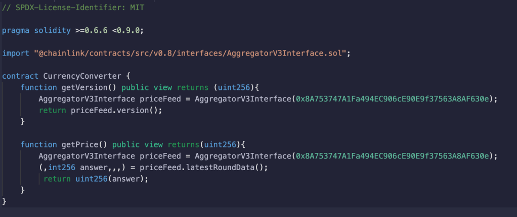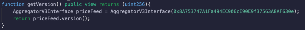 Now, we will access some information from the Chainlink blockchain using the interface. We will create a function to get the version of the interface.