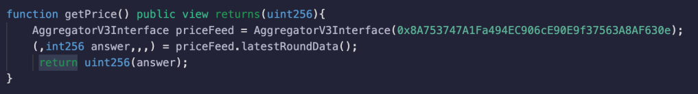 Now, we will create a function to get the current price of ETH in terms of USD from Chainlink.