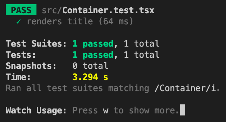 The above assertion is simply that the title element is in the Container component. This is just a very simple test.
