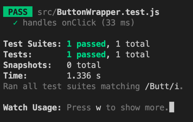 Now, create a testing file with the same name as the component file and a .test.js extension (or .test.tsx if you are using TypeScript) (i.e. ButtonWrapper.test.js)